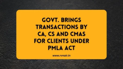 Government notifies that following transactions done by CA, CS & CMA on behalf of their client will be covered under Prevention of Money-laundering Act, 2002.S.O. 2036(E).In exercise of the powers